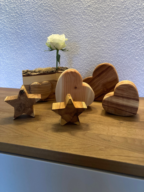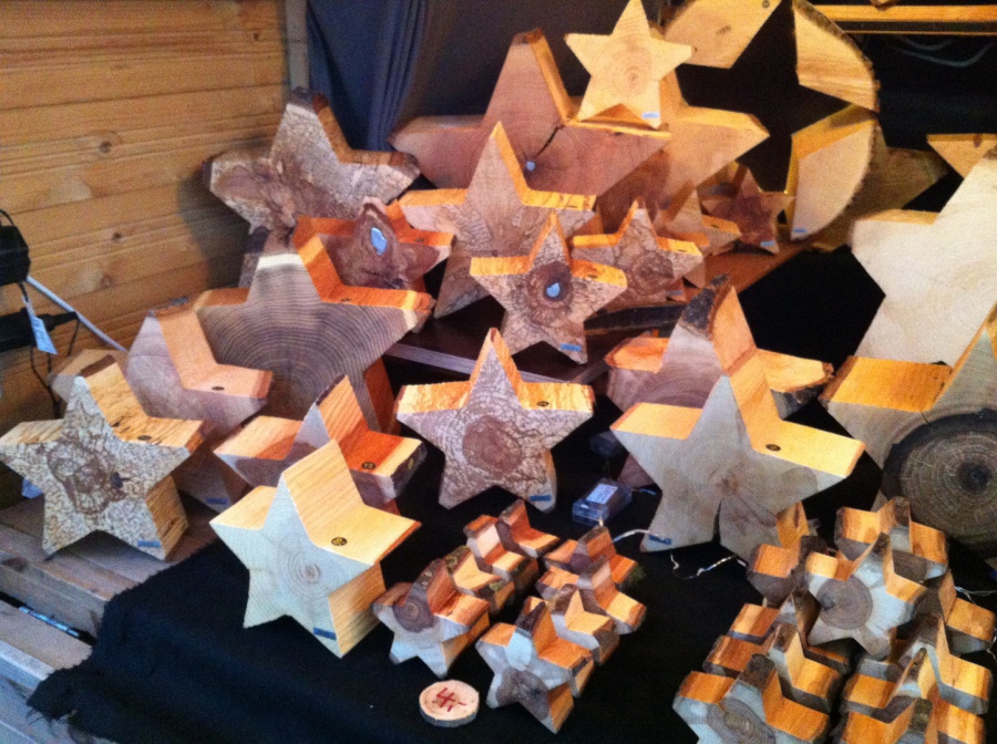 Dann trocknen sie über den Sommer und im Herbst werden sie geschliffen und geölt. Jeder Stern ist "einmalig"!